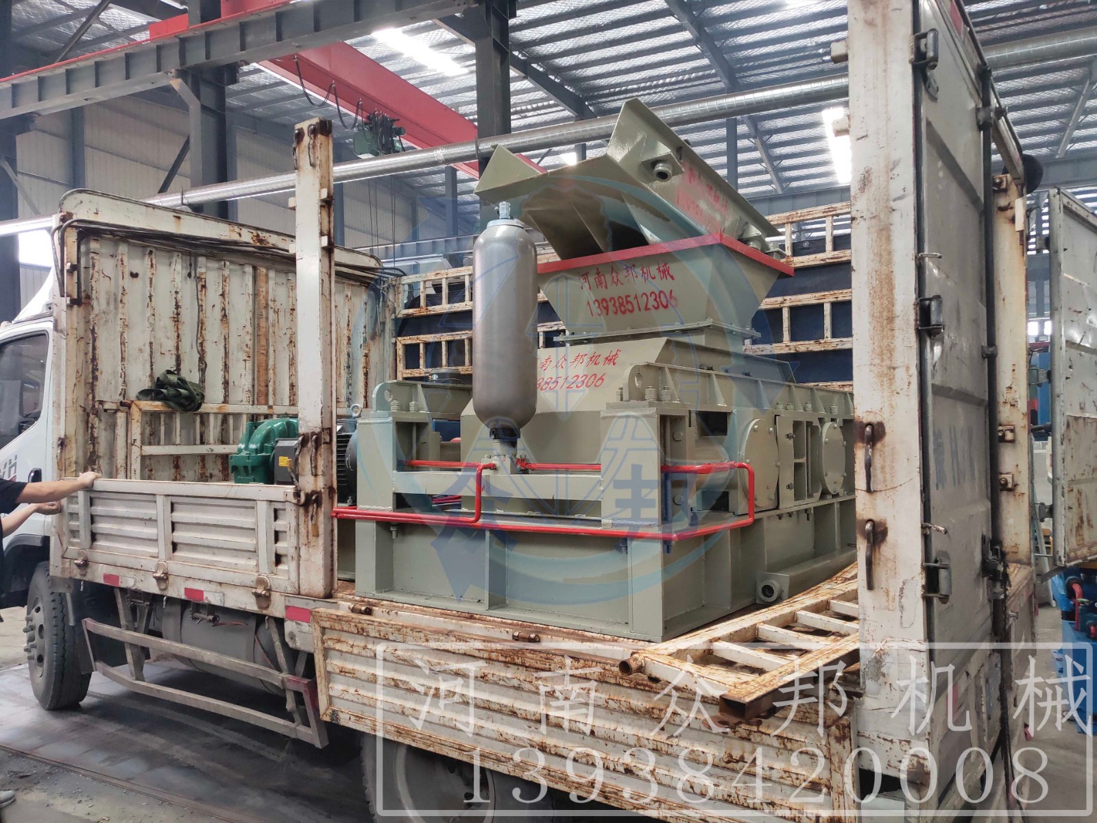 四川訂購液壓對輥制砂機一臺,發(fā)貨現(xiàn)場詳情