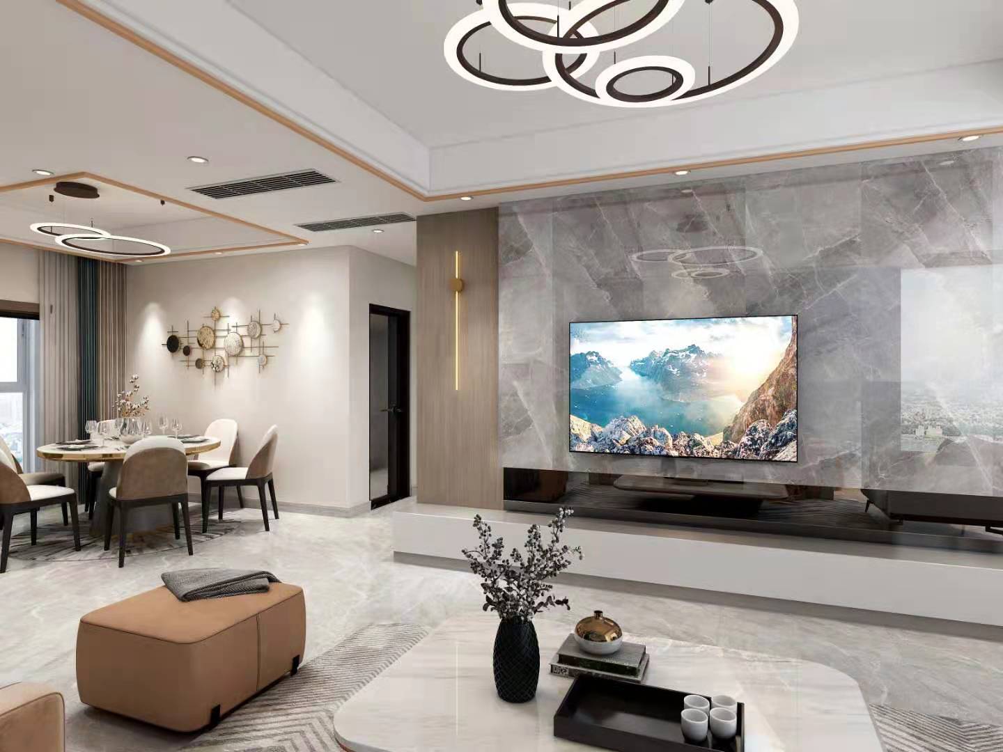 現(xiàn)代低調(diào)奢華風(fēng)格注重硬裝修手法的簡潔,但也并不像一般的簡約風(fēng)格那樣隨意?此坪啙崢闼氐耐獗碇聟s常常折射出一種隱藏的高貴氣質(zhì),這種氣質(zhì)大多數(shù)通過一些精致軟裝元素來體現(xiàn)。營造出舒適、通透、合理的使用空間,讓整個空間透著一種清澈、靜怡、寧和、雅致之美。